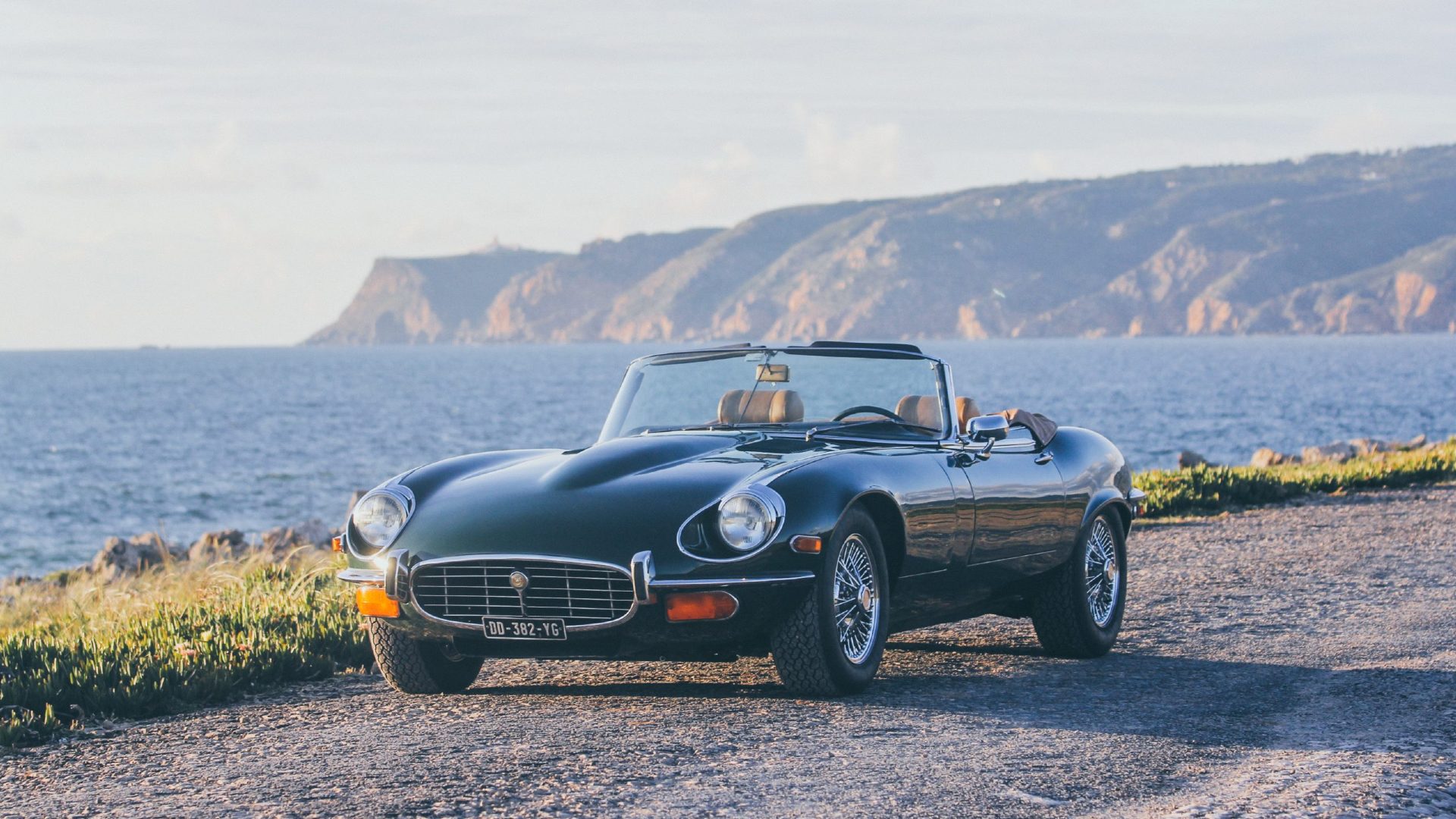 Rent a classic green Jaguar E-Type with beige interior and automatic transmission in Siena and Tuscany