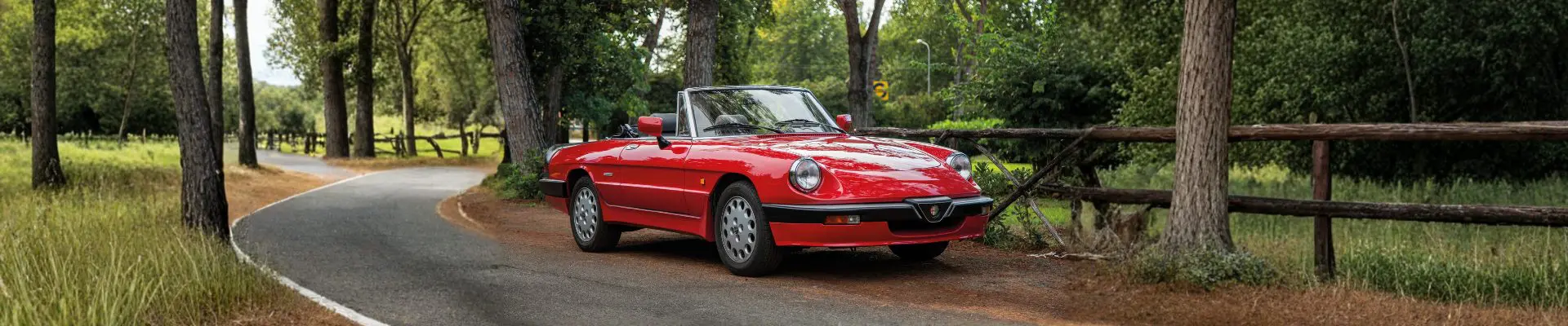 The red Alfa Romeo Duetto with black interior and leather soft top is the ultimate classic car for a stylish Italian road trip.