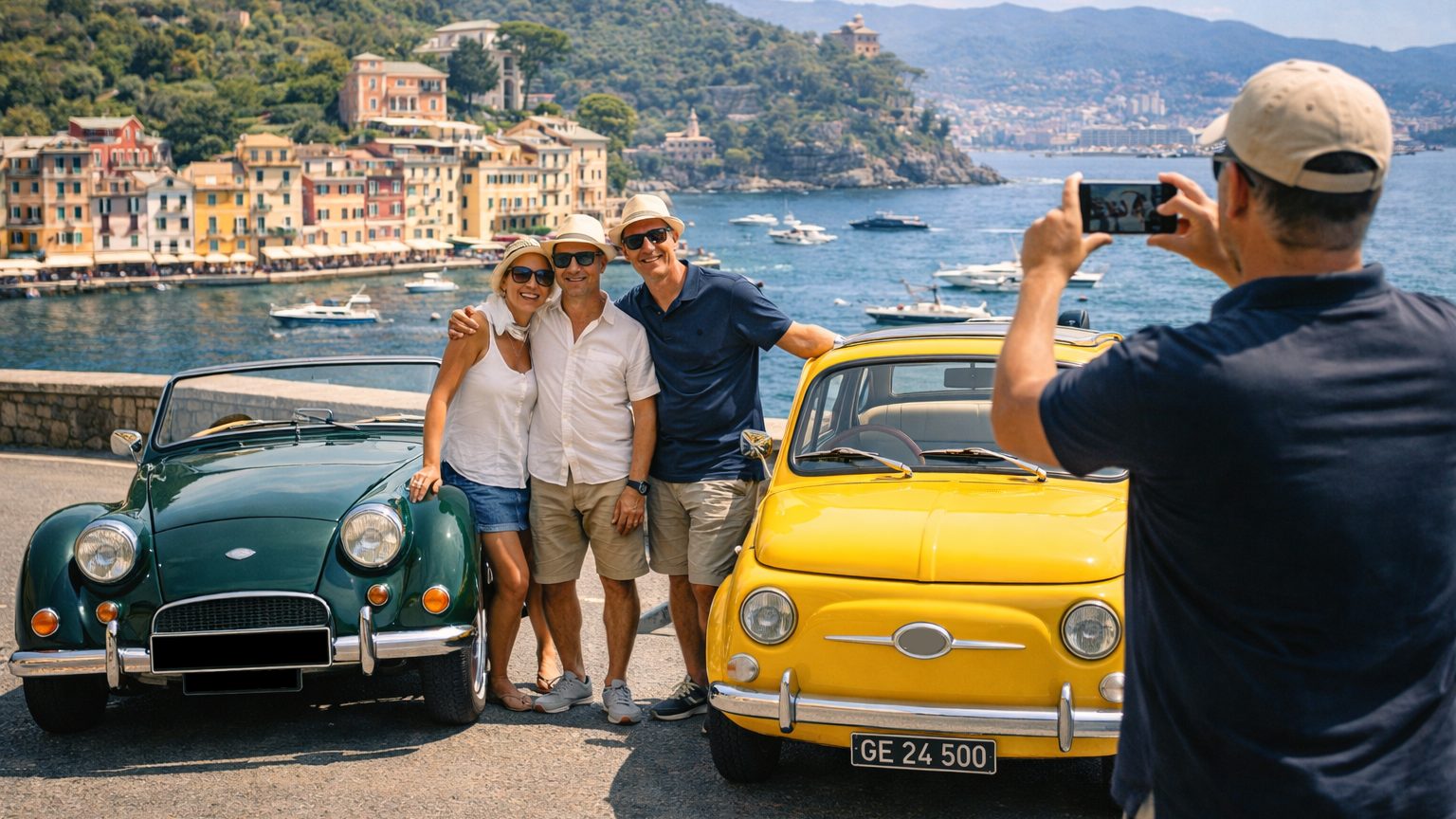 Book a vintage car tour in Liguria and enjoy a premium classic car experience across the most iconic spots of the Italian Riviera: Portofino, Santa Margherita Ligure, Rapallo, and the Cinque Terre. Expect cinematic seaside roads, colorful villages and curated stops ideal for high-end photo and video content.